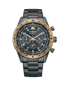 Read MorePart of the Chronograph collection, this timepiece incorporates sophisticated design and precise, modern Eco-Drive technology that works just as hard as you do. This watch features a rich easy-to-read black dial, date display, 3 sub dials and 100 meters water resistance. Additional features include mineral crystal, black stainless-steel case, gold accents and bracelet that makes it ideal for both work and play.