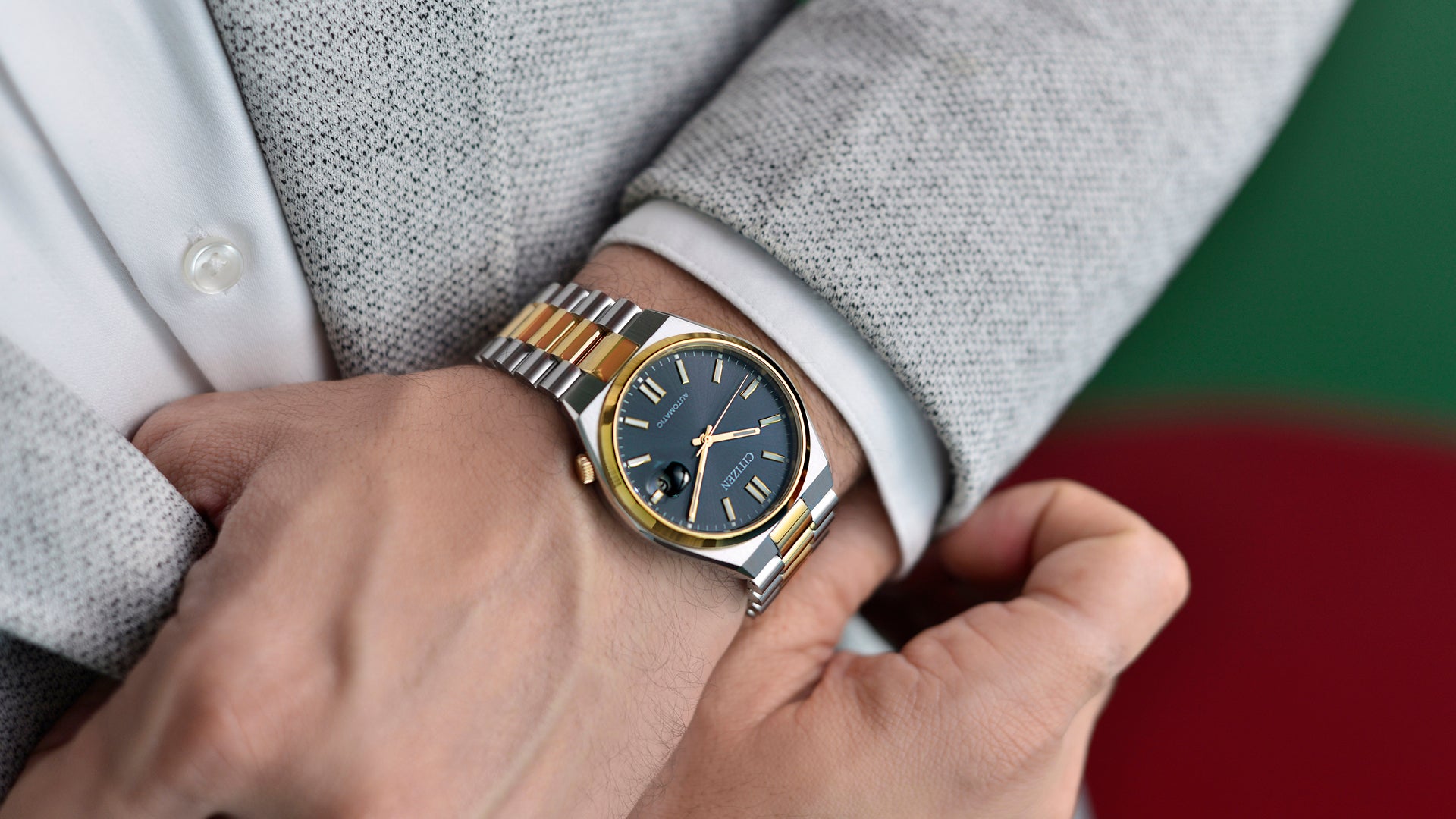 An enticing fusion of precision, durability and stylish design elements, this watch reflects meticulously considered craftsmanship in the pursuit of enduring quality. This gents watch is a new member of the Citizen Mechanical Collection. With an Automatic movement, dusty grey dial, two-tone bracelet, and gold tone hands, it is a sophisticated expression of style.