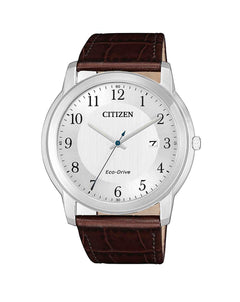 Showcasing stylish simplicity, the signature of this watch lies in its functionality. Offering precision that enables accuracy to within 15 seconds over the course of a full month, its power is generated by Eco-Drive, harnessing the energy of light to provide an environmentally friendly and convenient alternative to batteries. Walking the line between distinguished and minimalist, the sophisticated silver hues of the case and dial with date display are deftly complimented by the old-world appeal of the rich brown oxhide leather strap, creating a watch that is both suave and practical.