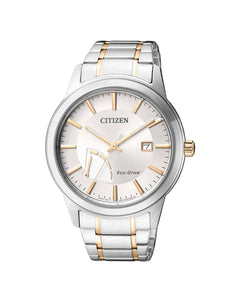 Read MoreClassically refined, this watch looks stylish yet it also performs under pressure. Silver tones accented by fashionable rose gold give this timepiece an air of distinction that adeptly complements suit and tie or casual dress, making it an ideal accessory for the modern man. Constructed from stainless steel and WR100, it also stands up to the rigours of contemporary living. Powered by Eco-Drive, it sources energy from any light source and also stores 8 months of power in reserve, making it a statement not only in looks, but also efficiency.
