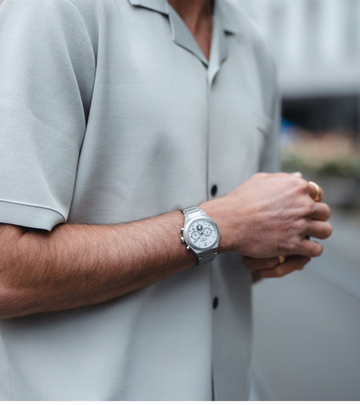 Classic timekeeping with stopwatch functionality, offering precision, sportiness, and a bold, technical look.