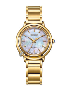Read MoreClassic lines and hints of romance make this newest piece to our ladies' collection; the Citizen L "Aising" is a glamorous addition. Inspired by the sunrise, this watch features a sleek design that combines the gentle, curving lines of the stainless-steel case with lustrous mother-of-pearl dial to showcase the delicate beauty of the sunrise itself. Continuing to provide sustainable watches, the Citizen L collection uses the elegant designs to reflect the beauty of the planet while evoking the feelings of joy and happiness every time you look at your wrist.Special features also include a 3 set diamond at the 7 o'clock postion, representing the the appearence of the first flash of dawn and extra strap.