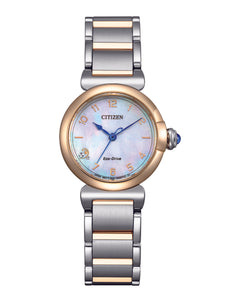 Read MoreClassic lines and a touch of romance define the newest addition to our ladies' collection: the Citizen L May Bells Mini. Drawing inspiration from the delicate Lily of the Valley, also known as May Bells, this watch exudes glamour and elegance. The design captures the flower’s essence with the gentle, curving lines of its two-tone stainless-steel case and a lustrous Mother of Pearl dial. Continuing our commitment to sustainability, the Citizen L collection marries elegant design with a respect for nature. Each watch in this collection is crafted to evoke joy and happiness, a daily reminder of the planet's beauty every time you glance at your wrist.