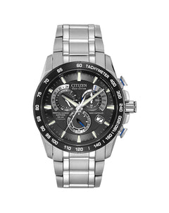 Read MoreCitizen Eco-Drive technology with atomic timekeeping makes this the most accurate watch in the world. This perpetual calendar is radio-controlled in 5 time zones, boasts a 1-second chrono that measures up to 60 minutes, and power reserve. Shown in titanium with black ion plating and blue & luminous accents under non-reflective sapphire crystal. Featuring our Eco-Drive technology – powered by light, any light. Never needs a battery. Caliber number E650.*Please note that the radio-controlled functionality will not work in Australia due to the absence of radio transmitting stations within range. These stations are exclusive to four regions: Europe, USA, China and Japan. However, this does not affect manual time adjustment. Please refer to your instruction manual for guidance.