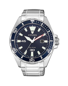 Read MoreWith its classic styling and reliable functionality, this watch is crafted for casual sophistication. Displaying versatile design elements with the silver hues of the band and case and a captivating deep blue dial with date display, it equally compliments a dressed down look in jeans or a professional aesthetic with a suit. Powered by Eco-Drive it converts light into energy, saving you the time and hassle of replacing batteries and making it a practical and eco-friendly timepiece.