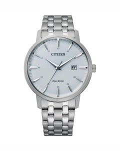 Read MoreA modern timepiece that displays classic aesthetic appeal. The looks of this watch are equally matched by its reliability. A smooth silver sleek dial and stainless steel bracelet. Features include Date, push button buckle and low charge indicator. Powered by our Eco drive, never needs a battery, only a light source.