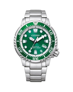 Read MoreProof that a dive watch can be fun and functional with Citizen ISO compliant Promaster Marine. With Eco-Drive technology, it is powered by light and never needs a battery. Featuring a one way rotating elapsed time bezel, screw down crown and stainless steel bracelet. It is stylishly understated with its dazzling emerald green dial and bezel. It will let you reach your limits and provide your life with the adventure you are searching for.