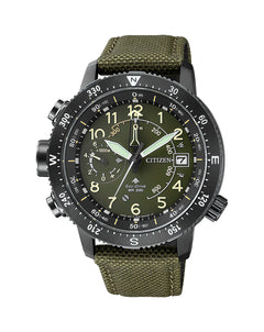 Read MoreComfortably in control whether in the office or scaling a sheer rock face, this PROMASTER ALTICHRON watch offers stylish precision. A reliable climbing partner, it features compass and Altimeter measuring between minus 300 metres to 10,000 metres above sea level, with information displayed in analogue format so there is no need to switch from the time display to check altitude or orientation. Representing the relentless pursuit of improvement, it is powered by Eco-Drive, so it never requires batteries. With its military inspired aesthetic and next level functionality, this watch is at the summit of style.