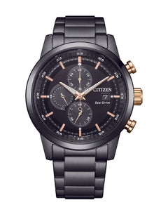 Read MoreThe pursuit of precision defines the Chronograph Collection, and this modern, stylish timepiece exemplifies that commitment. At its core lies the accuracy of a chronograph, seamlessly combined with Eco-Drive technology, which captures energy from any light source, eliminating the need for batteries. This watch boasts a water resistance of WR100, making it ideal for swimming and snorkeling. Its multi-dial functionality and date display provide both utility and sophistication. Crafted with durable black Ion stainless steel and featuring a striking deep black dial, this watch marries sharp aesthetics with exceptional performance.
