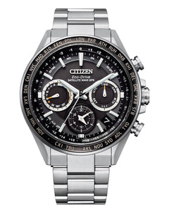 Renowned for its innovative design and advanced technology, Attesa continues to set the standard in the evolution of reliable luxury timepieces. The F950 series, powered by cutting-edge Eco-Drive Satellite Wave GPS technology, distinguishes itself with the world's fastest time-only signal reception—achieved in just three seconds. Housed in a scratch-resistant silver Duratect Super Titanium™ case with a matching bracelet, this watch offers exceptional durability and everyday practicality. Key features include a sapphire crystal bezel, 39-city world time, a sleek black three-register chronograph dial with silver-tone accents, dual time functionality, a perpetual calendar, light level indicator, charge suspension temperature detection, overcharge prevention, overdischarge detection, and water resistance up to 100 meters.