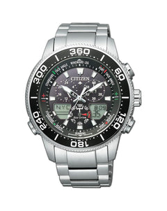Read MoreBoldly daring, this sporty watch conveys maximum info at a glance as a part of Promaster Land Collection. Features include a black dial with a 44 mm stainless steel case and bracelet with push button buckle, and is 200M WR. Featuring Eco-Drive Technology, Chronograph, Dual Time, Speed Display, World Time, Analog/Digital, Alarm function. Caliber number C660.