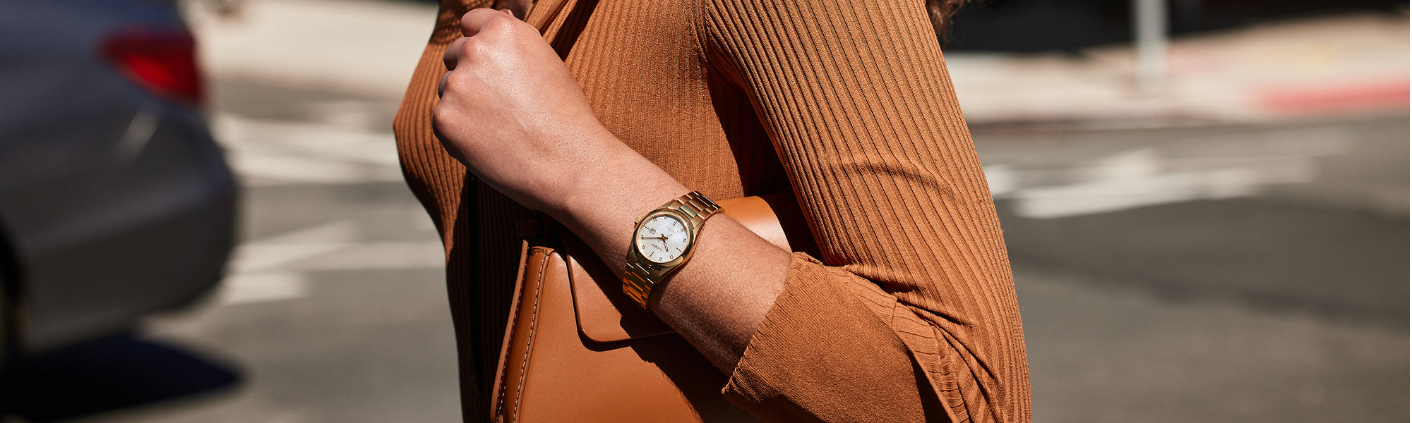 The CITIZEN L Collection combines timeless elegance with modern innovation, designed for the contemporary woman. This exquisite watch features a gold-tone stainless steel case and a radiant gold dial, encased in beveled sapphire crystal for added durability. Powered by Eco-Drive technology, it uses light to stay charged, so you’ll never need a battery. A sophisticated accessory for every occasion.