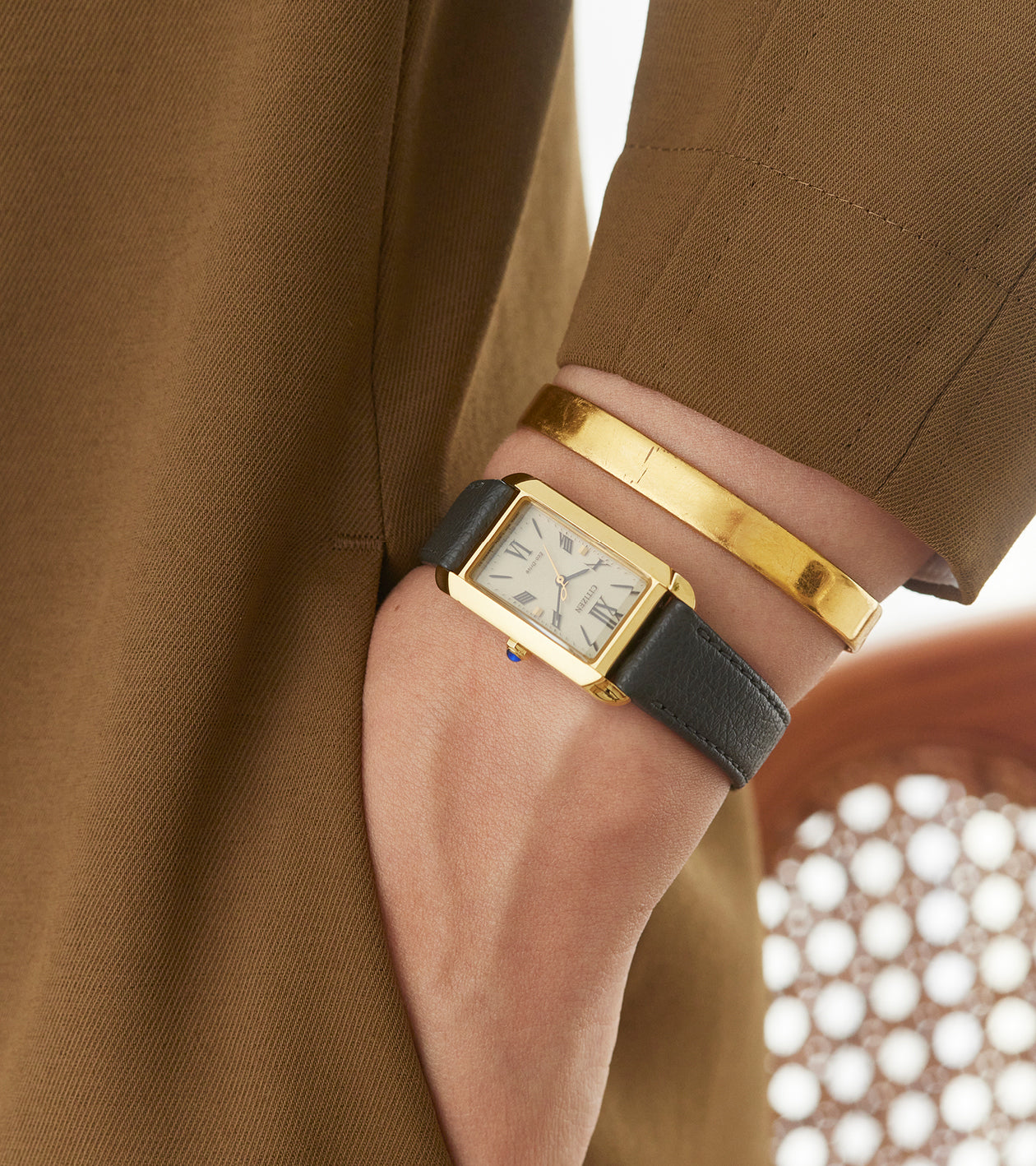 The Citizen L Limited Edition captures timeless elegance with a touch of romance, offering sustainable luxury in a glamorous design. Its 26mm gold-tone stainless steel case takes inspiration from a vintage perfume bottle, with soft, curved lines reminiscent of Maybells. At 3 o’clock, the distinct crown is shaped like a delicate perfume stopper, adding to its refined charm.