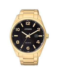 Read MoreThe pursuit of quality is about more than just looks, it demands performance. This watch handles that challenge in style via Eco-Drive, technology that uses light as power making it lighter and more efficient. First impressions created by the rich gold tones of this watch, accentuated by the tasteful midnight black dial, set the bar at a level only exceeded by the functionality of this sophisticated timepiece. Being water resistant and built from stainless steel with gold plating, it is tough and hard-wearing while retaining its refined allure. Accurate and reliable, this watch rises to the occasion.