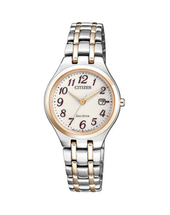 Read MorePracticality gets a stylish makeover in this gorgeous watch from the Dress Collection. With rose gold and silver dual toned band, elegant rose gold accentuated bezel and easy to read dial featuring date display, it is at once sophisticated and functional. Delivering dependability, it is crafted from resilient stainless steel with rose gold plating and uses Eco-Drive Technology to acquire power from light, making changing batteries a thing of the past.
