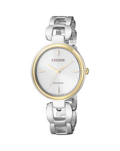 Read MoreSophisticated yet classic designed watch was created to maintain a refined look. Featuring a sleek two-tones stainless steel case. Our Eco-Drive technology gives this watch the ability to use light as a power source, taking away the expense and inconvenience of replacement batteries. Caliber number E031.