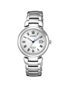 Read MoreCrafted from incredibly durable and lightweight Super Titanium and Sapphire Glass, this watch is as resilient as it is exquisite. The epitome of stylish distinction, it possesses smooth silver tones and a mesmerising textured white face. Powered by Eco-Drive technology, ambient light is harnessed and utilised for energy with up to 6 months held in reserve, ensuring you never have to worry about the hassle and expense of changing batteries. Caliber number E013.