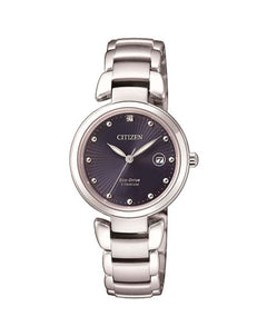 Read MoreCrafted from incredibly durable and lightweight Super Titanium and Sapphire Glass, this watch is as resilient as it is exquisite. The epitome of stylish distinction, it possesses smooth silver tones and a mesmerising textured midnight blue face that showcases a brilliantly shimmering diamond to dramatic effect. Powered by Eco-Drive technology, ambient light is harnessed and utilised for energy with up to 6 months held in reserve, ensuring you never have to worry about the hassle and expense of changing batteries.