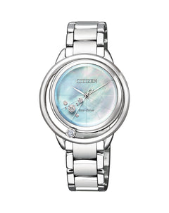 Read MoreSetting a benchmark in beauty and performance that will never go out of fashion, this stunning watch from the CITIZEN L Diamond Collection showcases stylish precision. With Eco-Drive Technology, power is obtained when exposed to light as opposed to batteries, it stores up to 7-months charge, so you never have to worry about time stopping. Featuring a mother of pearl dial and an exquisite floating diamond, it is at once stunning and resilient.