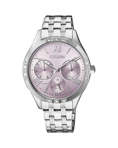 Read MoreWith a funky pink toned dial and brilliantly shimmering crystal elements adorning the bezel, this watch from the Ladies QUARTZ Collection is a statement in style. Equipped with performance pedigree to match its aesthetic allure, it is precise to within 20 seconds each month and features day and date display, 12/24 hour time, 3-year battery life and WR50. Providing an enchanting blend of style and substance, this watch is as durable as it is beautiful.