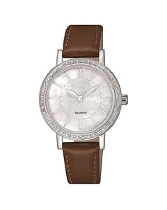 Read MoreThis gorgeous Quartz powered watch was designed to combine comfort with luxury. Featuring a deep brown, soft oxhide leather strap, it is an ideal everyday accessory, while the elegant mother of pearl face surrounded by shimmering crystal elements set into the bezel give it a lavish edge in creating an impression at any occasion. Built from robust stainless steel and mineral glass with 3 year battery life, it adds beauty to resilience.