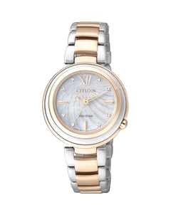 Read MoreDeftly blending timeless grace with precision technology, this watch from the CITIZEN L Collection is an elegantly functional piece designed for an active yet stylish lifestyle. The beauty of the mother of pearl dial is brought out by the delicate fusion of muted silver and rose gold tones of the bezel and band. Powered by Eco-Drive Technology and featuring push button buckle and robust stainless steel construction, it stands the test of time.