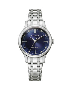 Read MoreThis ladies modern timepiece offers a classic and contemporary style for the simple watch wearer. A functional simplicity with a touch of elegance. Featuring a dark blue tone dial and stainless steel bracelet. Crystals are crafted on the dial to add a touch feminity to this classic accessory.