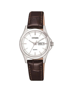 Read MoreCombining classic styling with effortless versatility, this watch is a beautifully balanced everyday accessory you can count on. Maintaining accuracy to within 20 seconds per month with WR50/5bar, strong stainless steel construction and 3 year battery life, this Quartz powered watch is built for day to day reliability. Also featuring rich brown oxhide leather band, easy to read fresh white face with silver highlights and day and date display, it is as fashionably comfortable as it is durable.