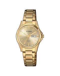 Read MoreWhile the sumptuous gold tones of this watch are all about style, its performance is all about reliable precision. Crafted from gold plated stainless steel for strength and peace of mind, with a soft matte gold face that adds refinement to its aesthetic, it is as beautiful as it is tough. Designed with 3 years battery life and precise to within 20 seconds per month.