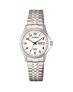 Read MoreThis watch gives classic functionality a fresh new look. Brushed and polished silver tones give it a stylish edge that works as well in the office as it does with jeans and a t-shirt, while easy to read white dial with date display, stainless steel construction, WR50/5bar and 3 year battery life make it a dependable choice for everyday wear.