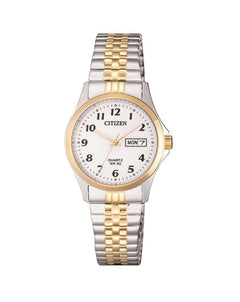 Read MoreCrafted for reliability and functional effectiveness, this watch is also a statement in refined style. Powered by a Quartz mechanism and featuring 3 year battery life, WR50/5bar and sturdy stainless steel construction, it is definitively robust. Meanwhile, the dual-toned gold and silver band combines with a gold plated bezel and eggshell white face to create a stylish finish that is the perfect accessory for any occasion.