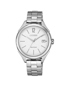 Read MoreAs part of Citizen Ladies Dress Collection, fashionable, precise and powered by light, creates an appeal unlike any other. Featured in silver-tone stainless steel case and bracelet with a white dial. Featuring our Eco-Drive technology – powered by light, any light. Never needs a battery. Caliber number J810.