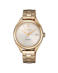 Read MoreAs part of Citizen Ladies Dress Collection, fashionable, precise and powered by light, creates an appeal unlike any other. Featured in rose gold-tone stainless steel case and bracelet with a champagne dial. Featuring our Eco-Drive technology – powered by light, any light. Never needs a battery. Caliber number J810.