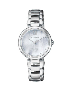 Read MoreResilience is always in style with this gorgeous watch crafted from robust stainless steel and scratch-resistant sapphire glass. Powered by Eco-Drive Technology with 6-months charge kept in supply, it utilises light energy to function instead of batteries, making it lighter in weight and environmentally responsible. With an exquisite mother of pearl dial set against smooth silver tones, this watch sets a benchmark in style for every occasion.
