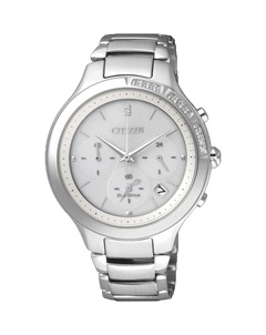 Read MoreDedicated in the pursuit of ever-improving watch making, craftsmen have combined tasteful elegance with strong capabilities to create an impressive example of modern style and performance. A diamond-crowned bezel surrounds a pure white dial and sub-dials with additional diamond features. Eco-Drive technology takes energy from light and uses it to power this watch, with a reliable 9 month reserve to ensure consistent performance. With a precision chronograph, accurate from 1 second to 60 minutes, coupled with superb looks, this watch is the epitome of considered design and quality craftsmanship.