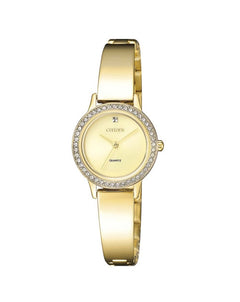 Read MoreCrafted by artisan watchmakers, this striking timepiece delivers luxurious indulgence with meticulous precision. Intricate detail in design combined with practical functionality are the defining characteristics of this watch, highlighted by the sumptuous matte gold tones of the dial and band, and the stunning crystal elements gilding the bezel. Fashioned from robust and reliable stainless steel with a 2-year battery life, this elegant piece leaves a lasting impression.