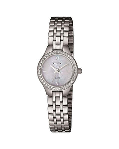 Read MorePossessing a modern look imbued with classic design elements that transcend trends, this Quartz powered watch holds allure both for its style and functional sophistication. Durably constructed from stainless steel, it is presented in subdued silver tones with a gorgeous and distinct pearlised face luxuriously encircled by a crown of shimmering crystal elements. Accurate to within 20 seconds over the span of an entire month with extensive 2 year battery life, it offers reliability when time is of the essence.