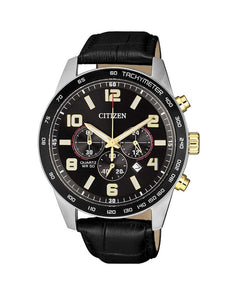 Read MoreBlurring the lines between traditional and contemporary aesthetics, this watch is where performance and style meet. Featuring ebony toned face, bezel and oxhide leather strap, silver hued case and gold tinted buttons and crown, it has a uniquely dapper look. With steadfast Quartz accuracy, it offers a chronograph that can measure up to 60 minutes in one second increments and a tachymeter to measure speed based on a fixed distance, so you can be confident that precision is always at hand.