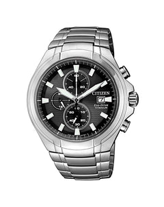 Read MoreIntricate craftsmanship, stylish design and forward thinking technology characterize this watch from the Super Titanium Collection. With a classic look and super titatium construction which is more than five times harder than stainless steel as well as light and gentle on skin. Featuring sleek black dial with sapphire crystal glass and 100 meter water resistance as well as date display. Eco-Drive harnesses light energy and uses it to power this watch and its precision chronograph, accurate from 1/5 of a second all the way up to 60 minutes.