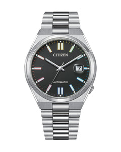 Introducing the "Tsuyosa" Automatic from the NJ015 series, a blend of contemporary sports styling and timeless elegance. With a versatile 40mm size, this watch features a sleek silver-tone stainless steel case seamlessly integrated with a matching bracelet, making a bold statement on your wrist. Protected by an anti-reflective sapphire crystal, the sunray black dial of this timepiece is accented by contrasting rainbow-tone details and a convenient 3 o'clock date window, adding both style and functionality. Powered by an automatic movement and offering water resistance up to 50 meters, the "Tsuyosa" Automatic is ready for daily wear, whether you're at work or enjoying leisure activities. Elevate your wrist game with this refined timepiece, perfect for every occasion.