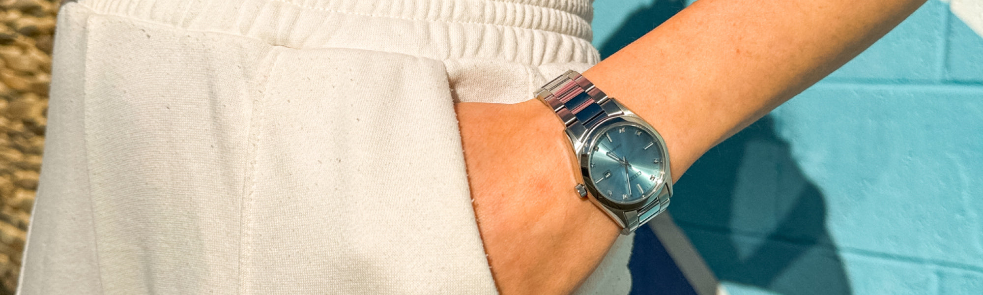 A popular design, this simple and elegant women’s business/dress style will take you from day to evening. Characterised by a simple and clean design, the band is brushed stainless steel bracelet surrounding a 30mm silver stainless steel case and a stunning dark blue brass dial finish providing an elegant touch. Topped with mineral crystal glass. Enhanced with Eco-Drive technology which allows your battery to self-charge from any light source, you can also use this model for swimming and snorkelling as it is water resistant to WR100/10 bar. A reliable timepiece with a classic design, a watch for every occasion. Additional features include 3 hands and date. Calibre J710.