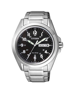 Read MoreThis stunning timepiece comfortably walks the line between corporate presentation and leisure activities. With steel tones and ample 43mm black dial, it is seamlessly professional and masculine. Outside the office, WR100 and the sturdy stainless steel case make it rugged, and with Eco-Drive technology on-board and 8 months power in reserve, batteries are never required. This stylish efficiency ensures you always have time on your side.
