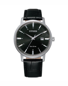 Read MoreA modern timepiece that displays classic aesthetic appeal. The looks of this watch are equally matched by its reliability. A smooth black sleek dial and Black oxhide leather bracelet. Features include date and low charge indicator. Powered by our Eco drive, never needs a battery, only a light source.