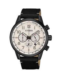 Read MoreFeaturing a bold alabaster toned face set against sleek black bezel, case and leather strap, this watch is a statement in style. More than just looks, it also possesses precision functionality with a tachymeter and chronograph that is accurate to within 1/5 second all the way up to 60 minutes. With 10bar water resistance, date display and the convenience of 12/24 hour time, it is a well rounded timepiece that compliments any wardrobe. Plus, with Eco-Drive technology on-board, the hassle of changing batteries isn’t required, so you’ll never have to make up for lost time.