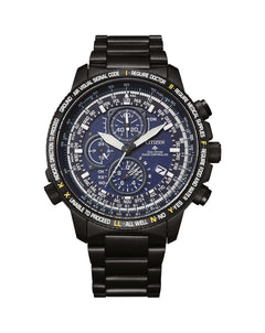 Read MoreDesigned for professional use that will let you reach your limits. Strengthen your watch collection with the latest Promaster Sky. Featuring a Super Titanium bracelet, making it 5 times harder than stainless steel yet 40% lighter. It is resilent to the rigors of everyday wear. Crafted with a sleek deep blue dial, sapphire glass and a 44.4 mm case. For enhanced performance, it also offers an emergency sign on the bezel, perpetual calendar, radio controlled, world time in 26 cities, aviation slide rule inner ring and a cockpit dial design. Powered by Eco-Drive technology, never needs a battery, only a light source. *Please note that the radio-controlled functionality will not work in Australia due to the absence of radio transmitting stations within range. These stations are exclusive to four regions: Europe, USA, China and Japan. However, this does not affect manual time adjustment. Please refer to your instruction manual for guidance.
