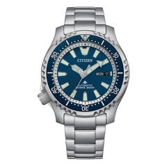 Read MoreThe new Promaster dive Limited edition automatic men’s watch by Citizen reimagines an iconic classic. Building on the heritage of the original 1989 diving watch, it’s designed for modern dive watch enthusiasts. The standout feature is its distinctive serrated bezel, inspired by the fugu, the Japanese pufferfish. This watch includes a 3-piece, 42mm case, anti-reflective sapphire crystal, and a stainless steel bracelet. The blue rotating bezel with an easy-grip aluminum ring frames a blue dial with luminous hands and markers. The case back is engraved with a fugu. Technically advanced and automatic, this sport watch comes in a limited edition collector’s dive tank and is ISO compliant with a screw-down crown, offering water resistance up to 200 meters.