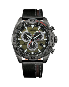 Read MoreLooking to showcase your sporting spirit? Then look no further than the eye-catching Promaster Land. With its dashboard inspired dials in bold racing green this motor sports chronograph model is perfect for men looking for a high performance timepiece. Highlights include the radio-controlled time function receiving atomic time-keeping signal accurate to 1 second every 100 million years! It also boasts a tachymeter with enlarged font, sapphire glass making it virtually unscratchable and Eco-Drive technology so you never run out of battery. Additional functions include perpetual calendar, 12/24 hour and world time, day and date, alarm, daylight savings functioning, water resistance up to WR200/20 bar for the ultimate in sporting precision. This distinctive timepiece features a green/ grey stainless steel 44.6mm case and a black calf strap. Calibre, E660. To make a lasting impression, look no further than this striking accessory.