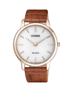 Read MoreA refined blend of style and reliability, this watch uses the sustainable technology of Eco-Drive in order to obtain power from light without the need for batteries. Featuring brown oxhide leather strap, rose gold bezel and elegantly textured white dial with rose gold markings, it possesses a classically masculine aesthetic that works for any occasion. Accurate to within 15 seconds per month and built from tough stainless steel, it is also suitable for everyday wear.
