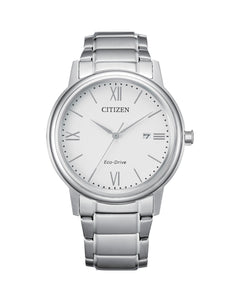 Read MoreA popular design, this simple and elegant men’s business/dress style will take you from day to evening. Characterised by a simple and clean design, the band is brushed stainless steel bracelet surrounding a 41.4mm stainless steel case and a stunning white brass dial finish providing an elegant touch. Featuring 3 hands and topped with a mineral crystal glass. Enhanced with Eco-Drive technology which allows your battery to self-charge from any light source, this model is also water resistant to WR100/10 bar. A reliable timepiece with a classic design, a watch for every occasion. Calibre J810.