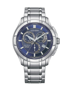 Read MoreDesigned to make a statement. This perpetual calendar boasts dual time and 1. 5 years power reserve. Featuring an ultra smooth blue dial with hints of silver, sapphire glass and a push button buckle. Never be late with day/date, alarm and month chronograph. Also featuring Eco drive technology, powered by light, any light. Never needs a battery.
